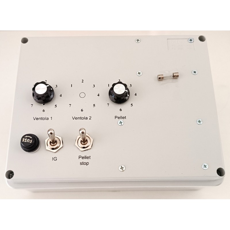 Gestisce un bruciatore a pellets e altri combustibili solidi triti. Si può fornire con due ventole Misure 20 x 15 h 10 cm