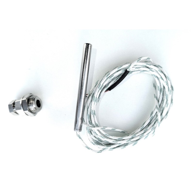 Sonda / sensore di temperatura tipo termocoppia con blocca sonda. Sonda per misurare la temperatura dei fumi in caldaia/stufa lunghezza cavo 2,5 mt Max 450° tubetto 6X60
